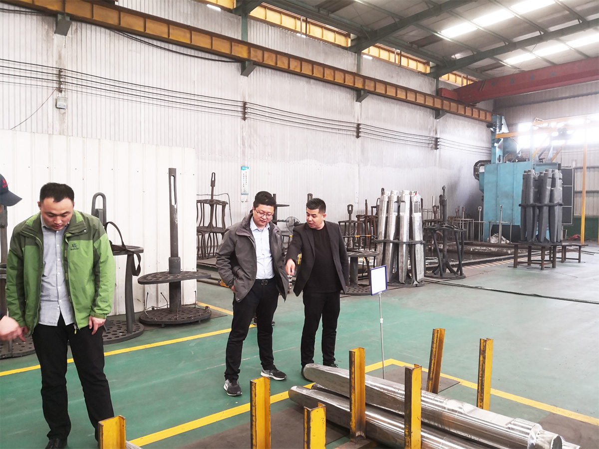 3月31日下午,徐工集團(tuán)挖掘機(jī)事業(yè)部備件公司李總一行蒞臨眾業(yè)公司,就企業(yè)裝備制造生產(chǎn)實(shí)地考察,董事長(zhǎng)唐偉恒等公司領(lǐng)導(dǎo)陪同。李總首先對(duì)產(chǎn)品生產(chǎn)流程及生產(chǎn)設(shè)備等具體工作進(jìn)行參觀,重點(diǎn)就熱處理工藝詳細(xì)查看,與一線干部職工交流,并詳細(xì)了解高端產(chǎn)品TSG46A和TSG48A的優(yōu)勢(shì),以及客戶使用的反饋。眾業(yè)公司引進(jìn)先進(jìn)的進(jìn)口生產(chǎn)設(shè)備和檢測(cè)儀器,并采用國(guó)際先進(jìn)技術(shù)。為保證釬桿及配件高品質(zhì)、高強(qiáng)度、高耐磨,產(chǎn)品選料考究,生產(chǎn)工藝合理先進(jìn),且采用獨(dú)特的熱處理工藝技術(shù)《分段式熱處理技術(shù)》,特殊的合金鋼材質(zhì)、獨(dú)特的生產(chǎn)工藝,產(chǎn)品質(zhì)量達(dá)到國(guó)際先進(jìn)水平。眾業(yè)公司致力于系列產(chǎn)品的研發(fā)、生產(chǎn)、銷(xiāo)售及相關(guān)技術(shù)服務(wù),公司擁有專(zhuān)業(yè)的機(jī)械工程師和技術(shù)人才百余人,專(zhuān)業(yè)的技術(shù)經(jīng)驗(yàn),全力為客戶提供快捷、優(yōu)質(zhì)的售后服務(wù)。與國(guó)內(nèi)外多家知名品牌破碎錘廠家保持常年合作發(fā)展,產(chǎn)品出口中東、歐美等多個(gè)國(guó)家和地區(qū)。